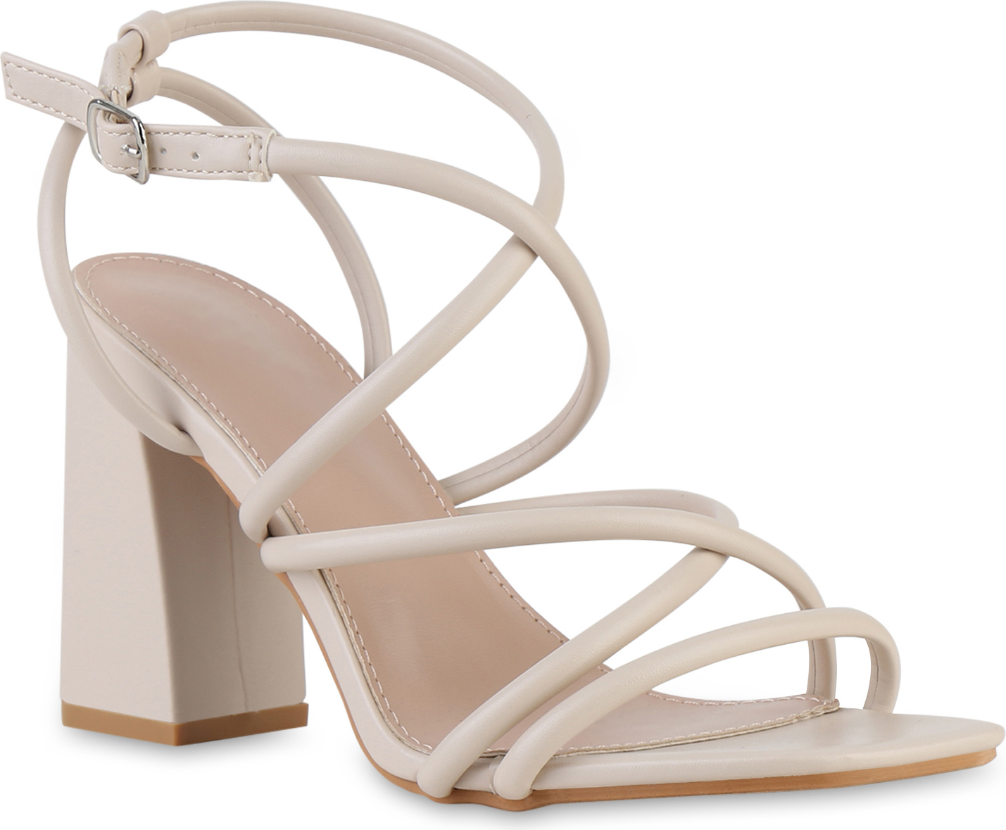 VAN HILL Damen Riemchensandalette Sandalette Klassische Party Schuhe 841570, Farbe: Beige, Größe: 39