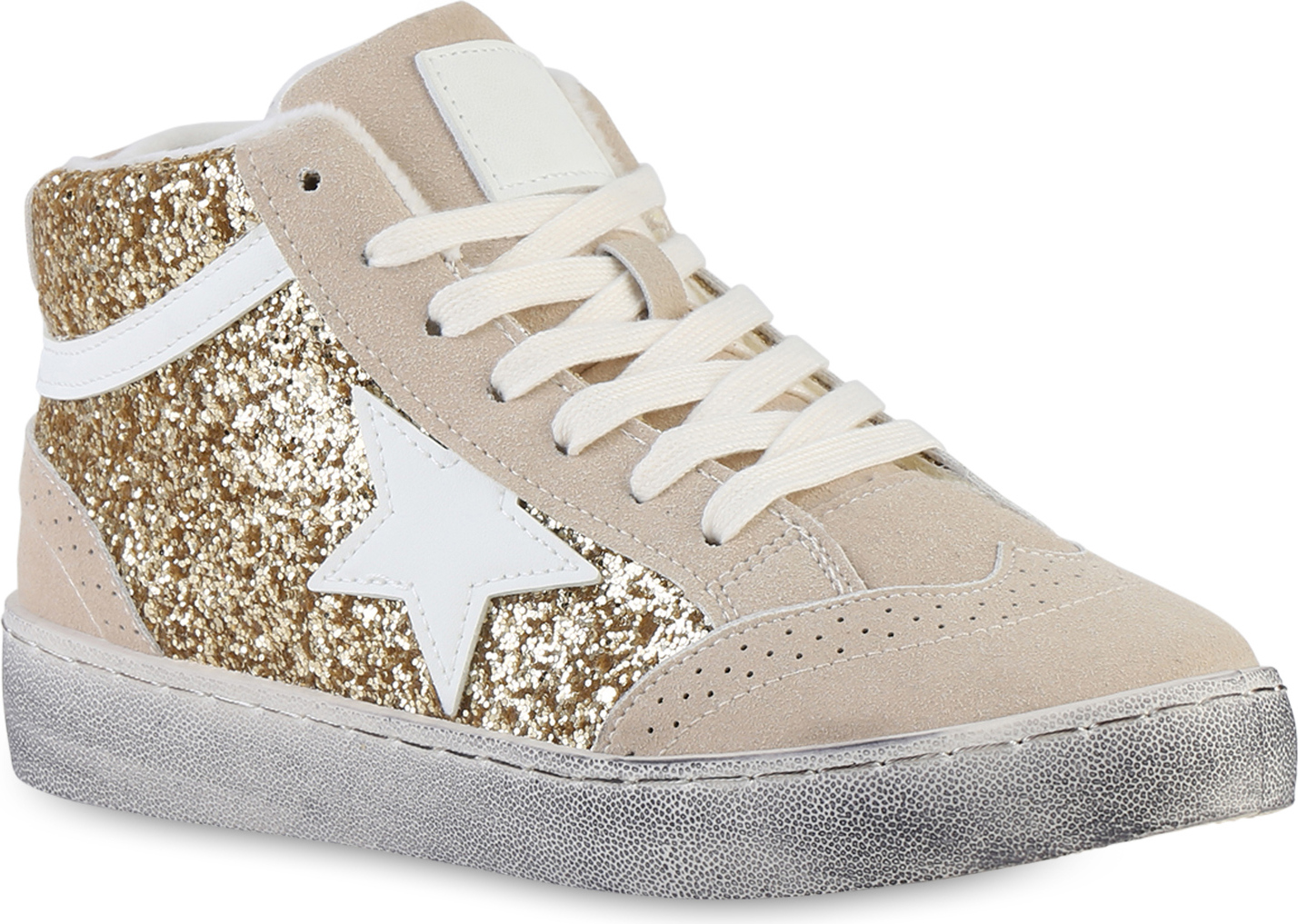 VAN HILL 841577 Sneaker Damen Sneaker High Schnürer Glitzer Freizeit Schnür- (gold)