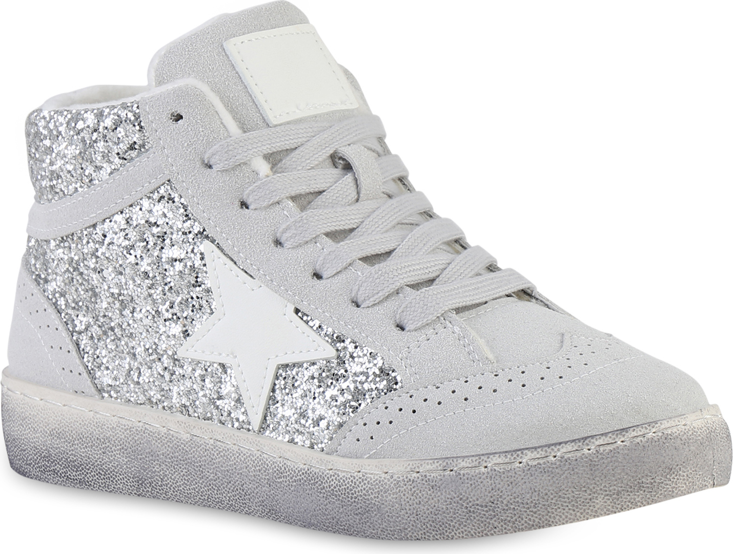 VAN HILL 841577 Sneaker Damen Sneaker High Schnürer Glitzer Freizeit Schnür- (silber)