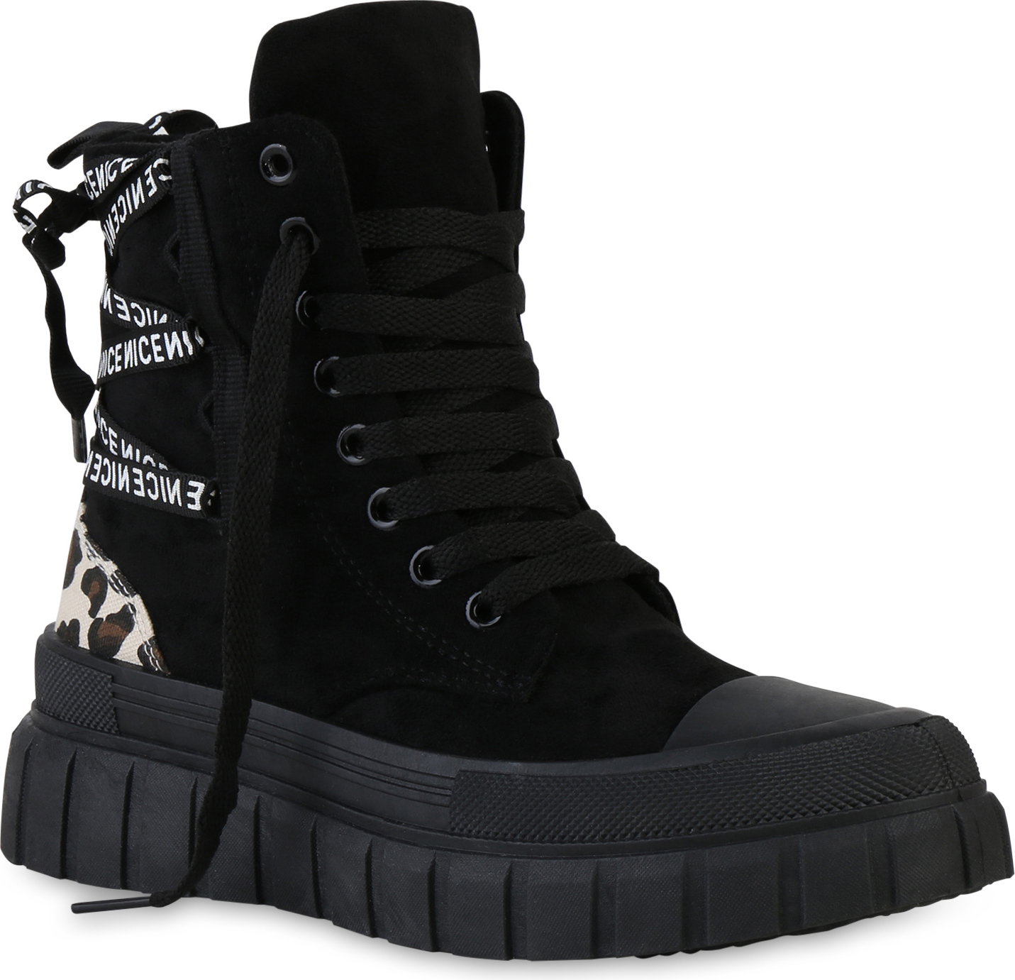 VAN HILL 841579 Sneaker Damen Sneaker High Schnürer Prints Profil-Sohle Freizeit (schwarz)