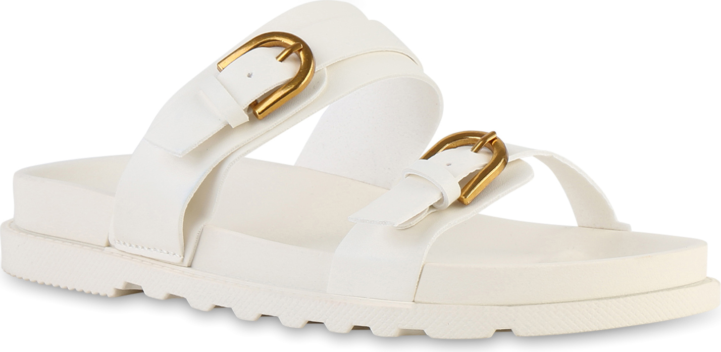 VAN HILL 841594 Pantolette Damen Pantoletten Sandalen Bequeme Schnallen Profil-Sohle (weiß)