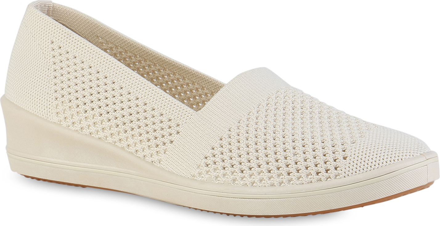 VAN HILL 841597 Slipper Damen Keilslipper Keilabsatz Bequem Strick Freizeit Slip On (beige)