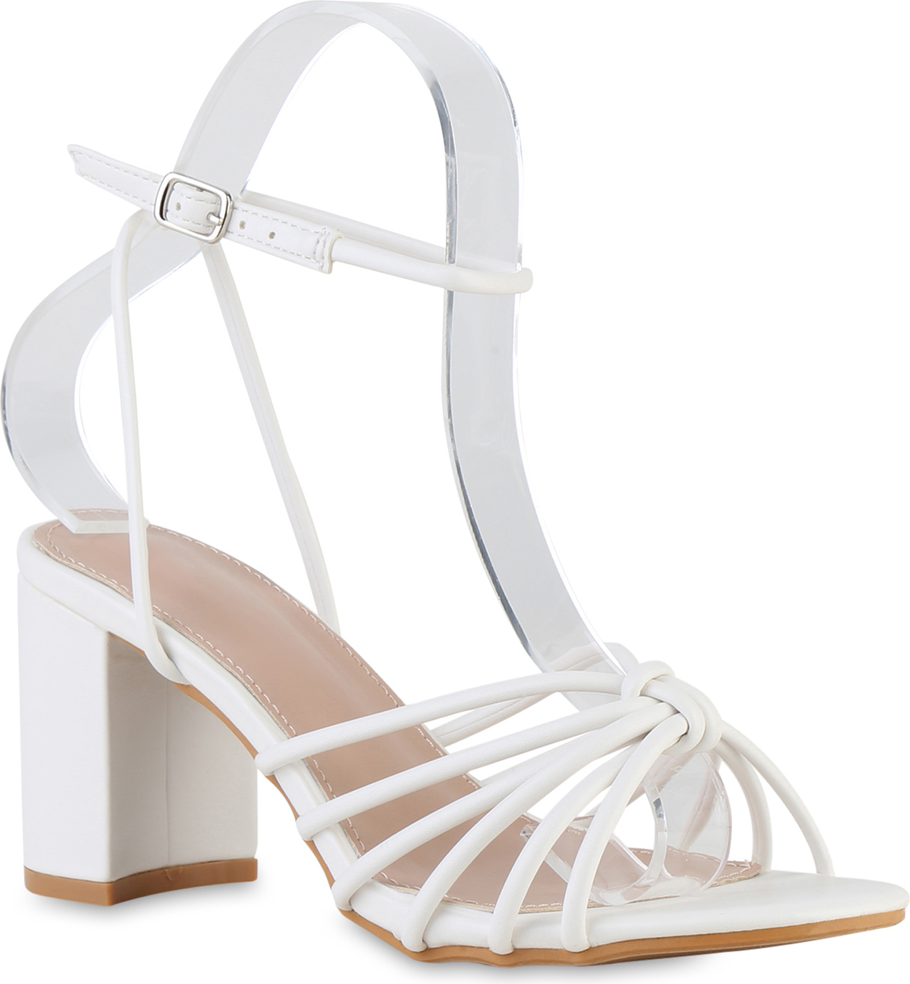 VAN HILL 841600 Riemchensandalette Damen Riemchensandaletten Sandaletten Elegante Basic Party (weiß)