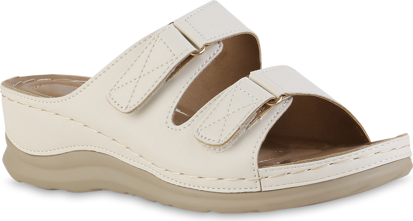 VAN HILL 841615 Sandale Damen Komfort Sandalen Bequeme Keilabsatz Basic Leder-Optik (beige)