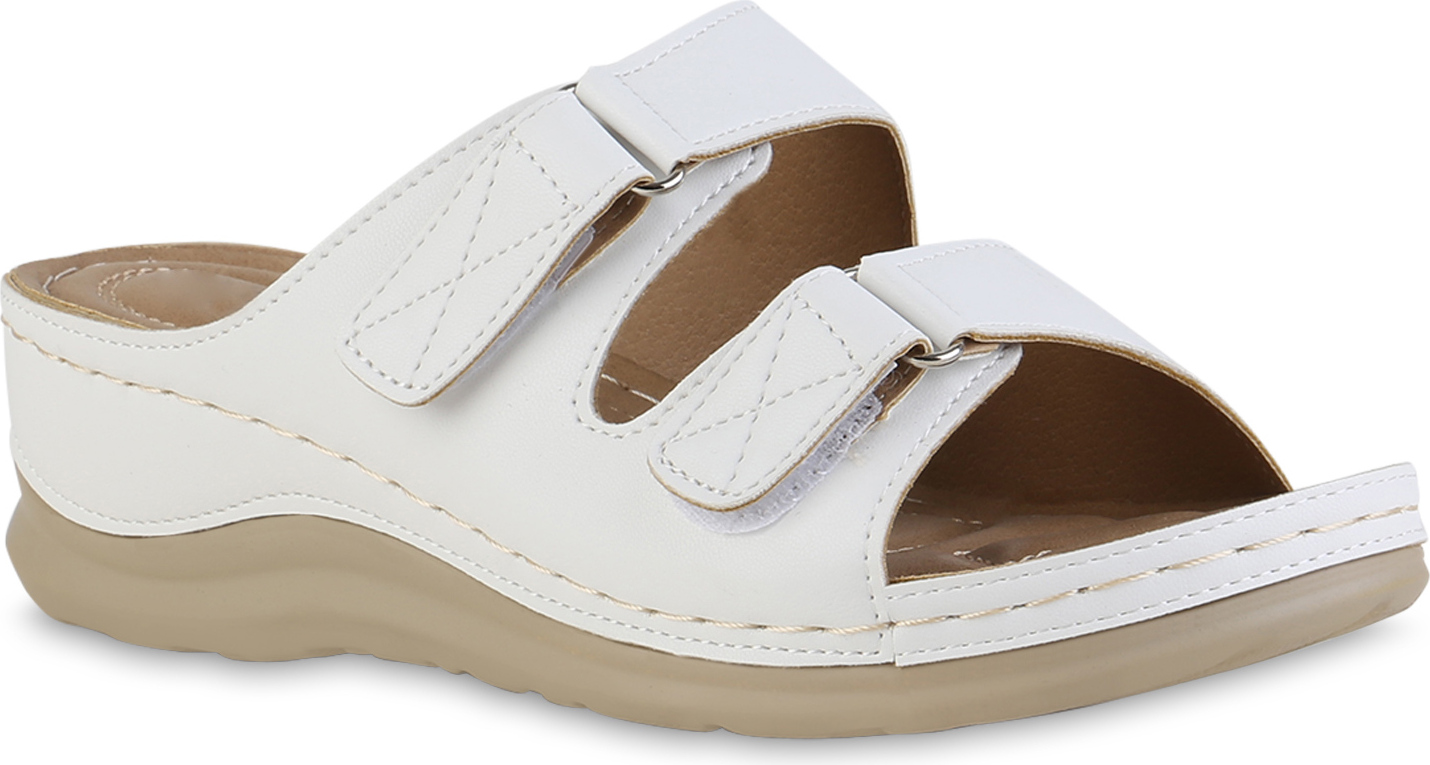 VAN HILL 841615 Sandale Damen Komfort Sandalen Bequeme Keilabsatz Basic Leder-Optik (weiß)