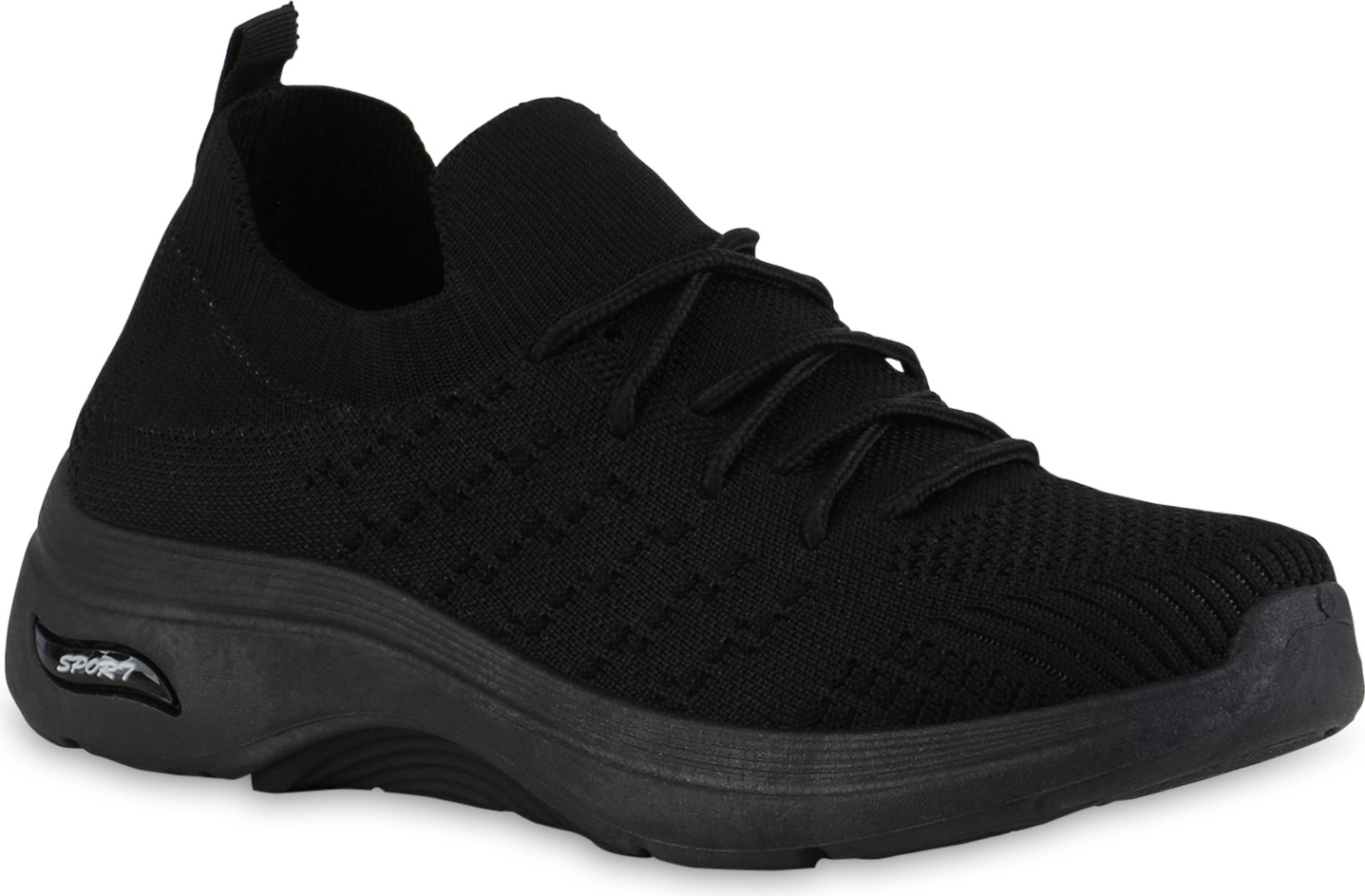 VAN HILL 841618 Laufschuh Damen Laufschuhe Sportschuhe Schnürer Sportliche Strick (schwarz)