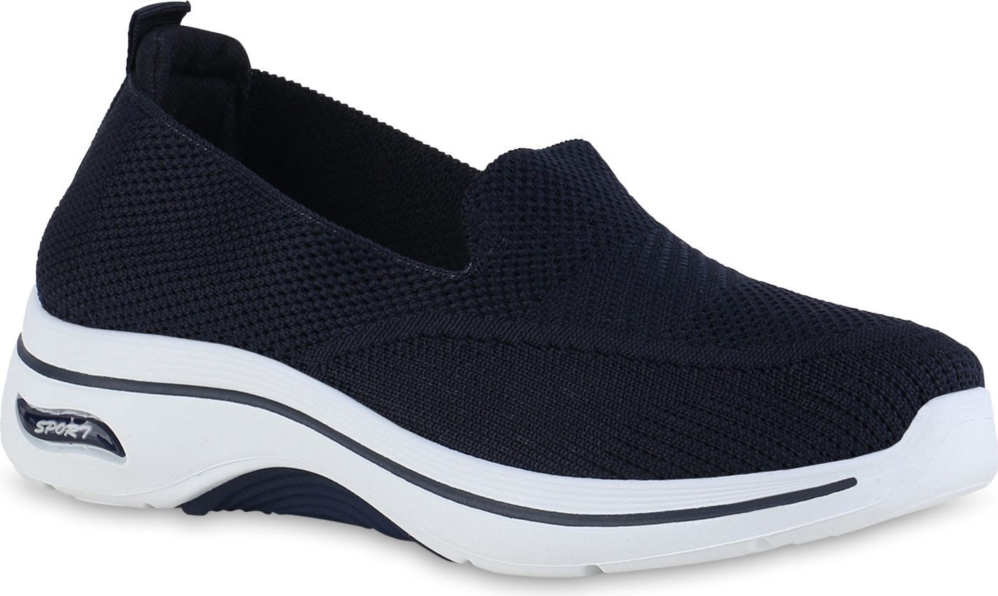VAN HILL 841624 Laufschuh Damen Slip Ons Sportschuhe Sportliche Strick Profil-Sohle (blau)