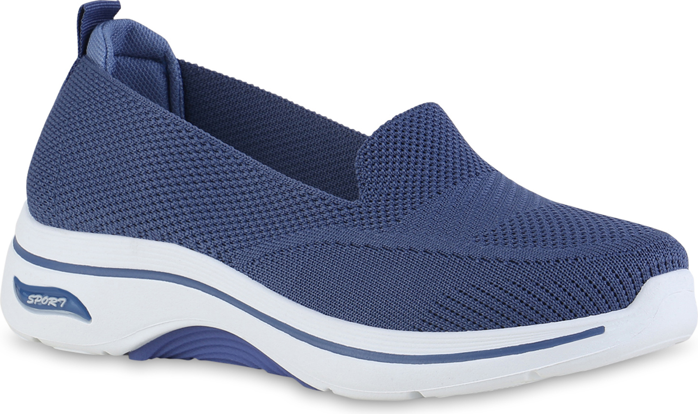 VAN HILL 841624 Laufschuh Damen Slip Ons Sportschuhe Sportliche Strick Profil-Sohle (blau)