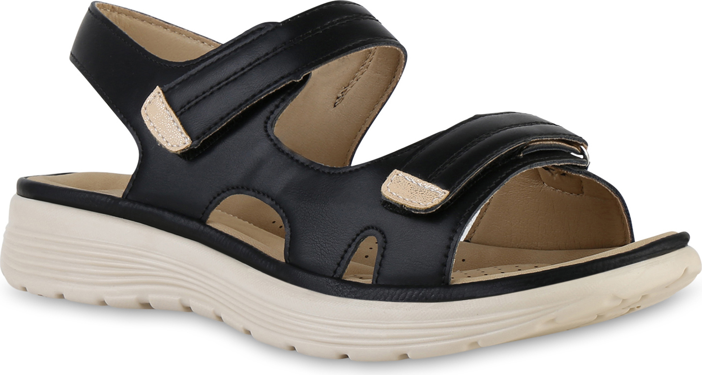 VAN HILL 841626 Sandale Damen Komfort Sandalen Bequeme Cut-outs Profil-Sohle (schwarz)