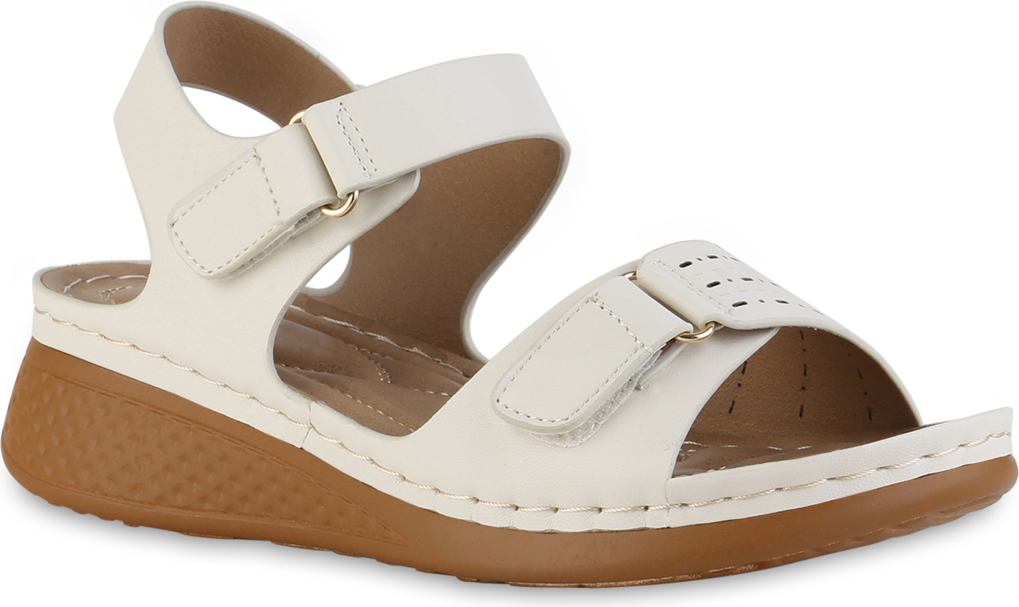 VAN HILL 841627 Sandale Damen Komfort Sandalen Bequem Cut-outs Freizeit Leder-Optik (beige)