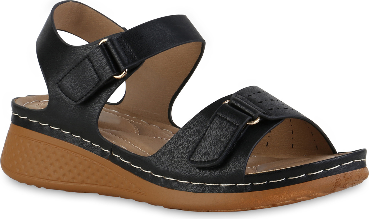 VAN HILL 841627 Sandale Damen Komfort Sandalen Bequem Cut-outs Freizeit Leder-Optik (schwarz)