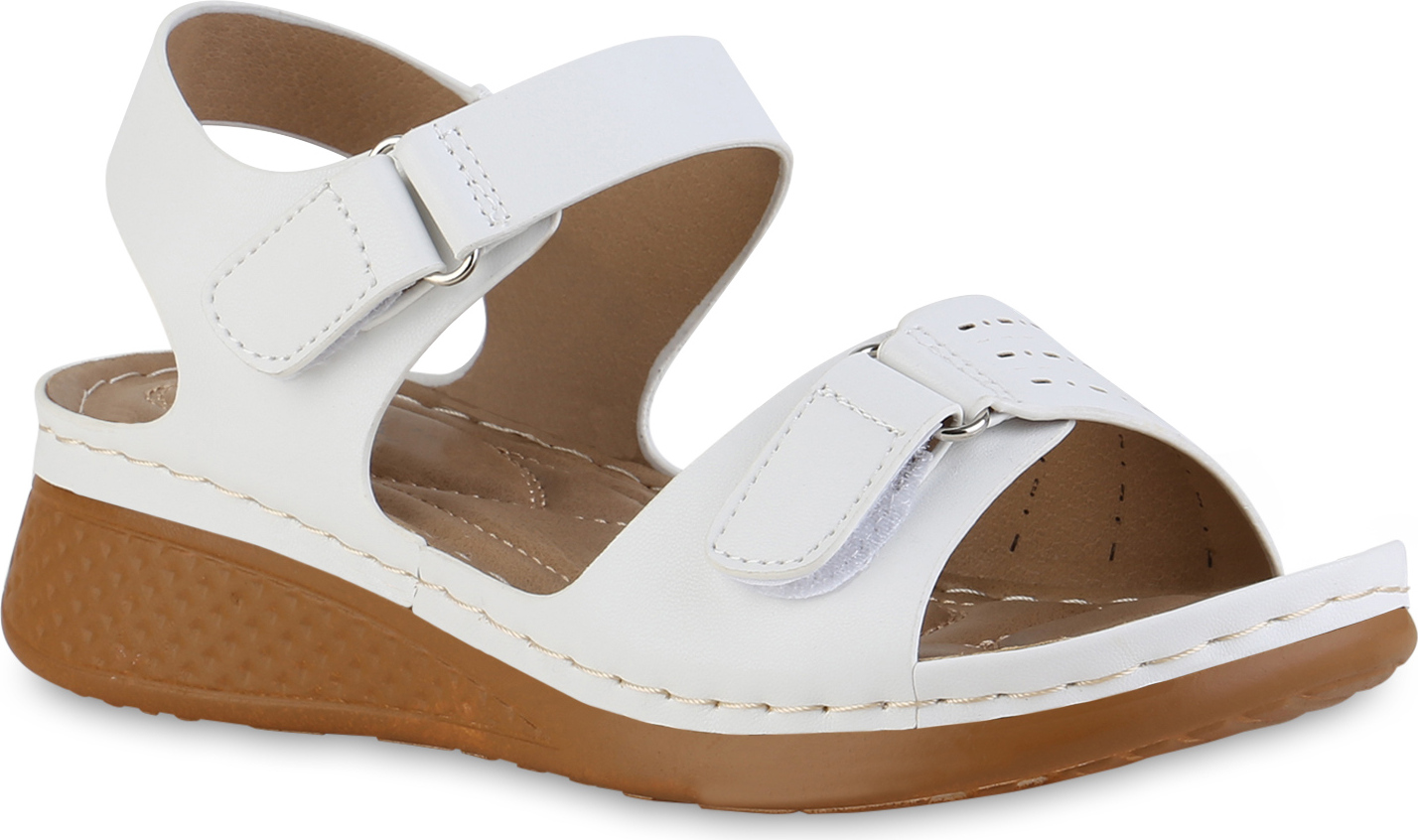 VAN HILL 841627 Sandale Damen Komfort Sandalen Bequem Cut-outs Freizeit Leder-Optik (weiß)