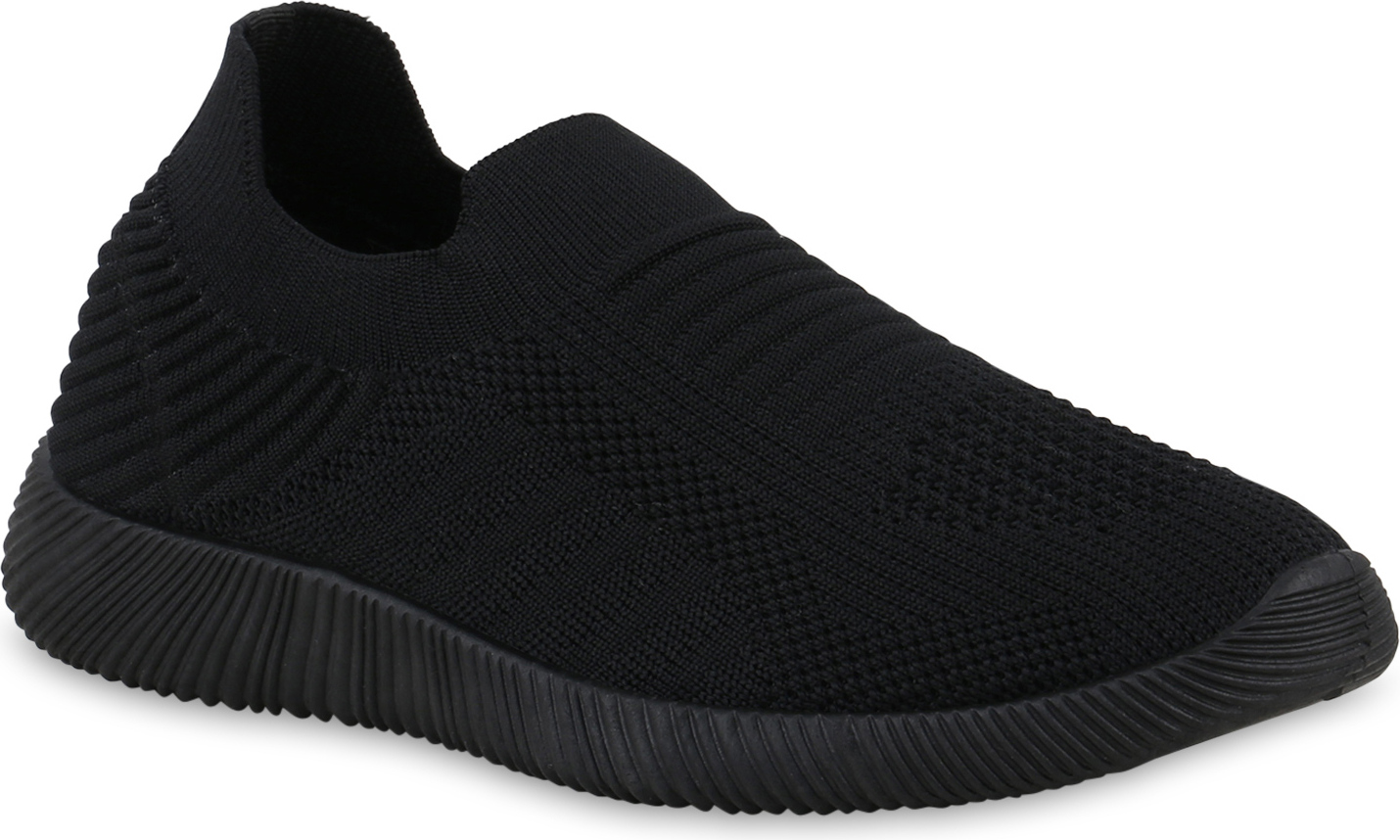 VAN HILL 841648 Laufschuh Damen Slip Ons Sportschuhe Sportliche Strick Profil-Sohle (schwarz)