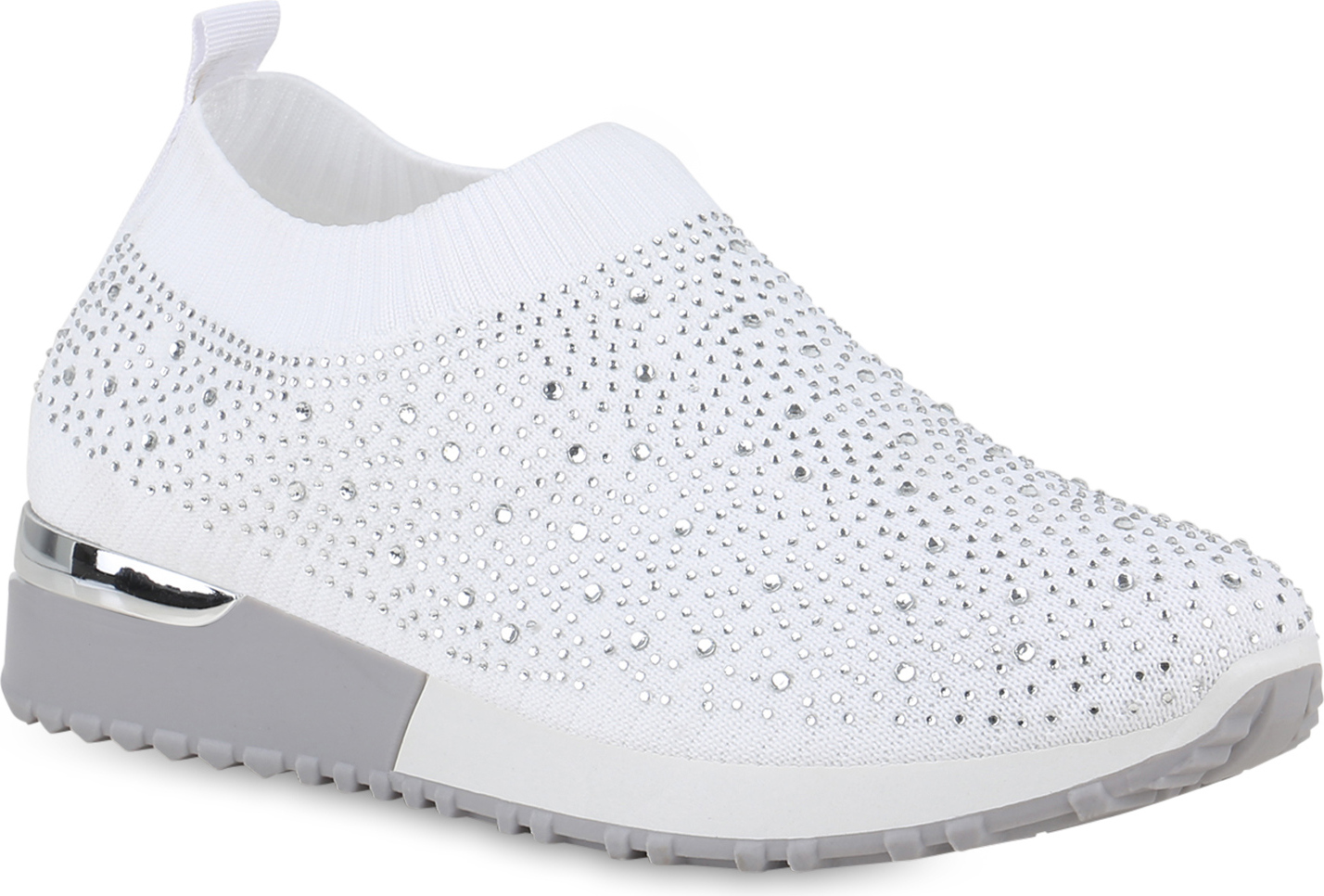 VAN HILL 841663 Laufschuh Damen Slip Ons Sportschuhe Sportliche Strass Profil-Sohle (weiß)