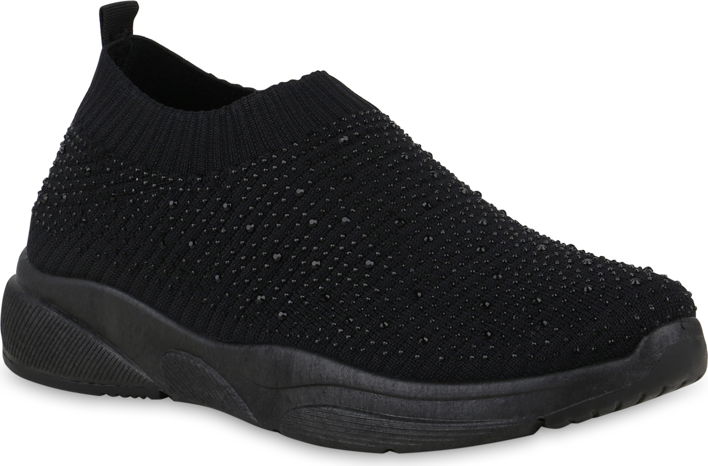 VAN HILL 841664 Laufschuh Damen Slip Ons Sportschuhe Sportliche Strass Profil-Sohle (schwarz)
