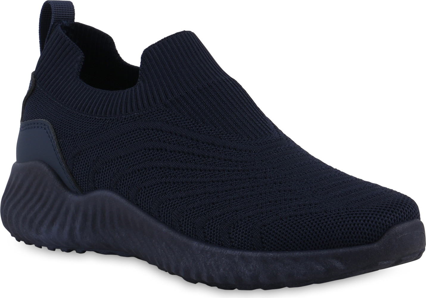 VAN HILL 841677 Laufschuh Damen Slip Ons Sportschuhe Sportliche Strick Profil-Sohle (blau)