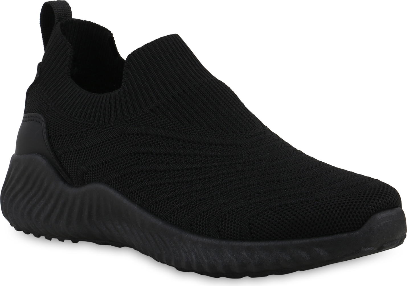 VAN HILL 841677 Laufschuh Damen Slip Ons Sportschuhe Sportliche Strick Profil-Sohle (schwarz)