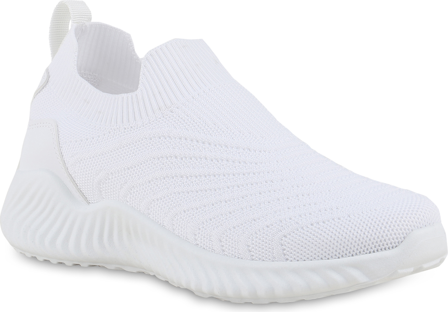 VAN HILL 841677 Laufschuh Damen Slip Ons Sportschuhe Sportliche Strick Profil-Sohle (weiß)