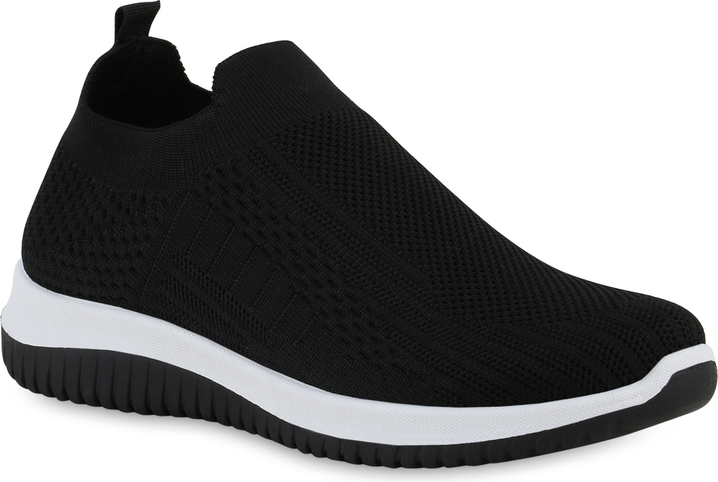 VAN HILL 841678 Laufschuh Damen Slip Ons Sportschuhe Sportliche Strick Profil-Sohle (schwarz)