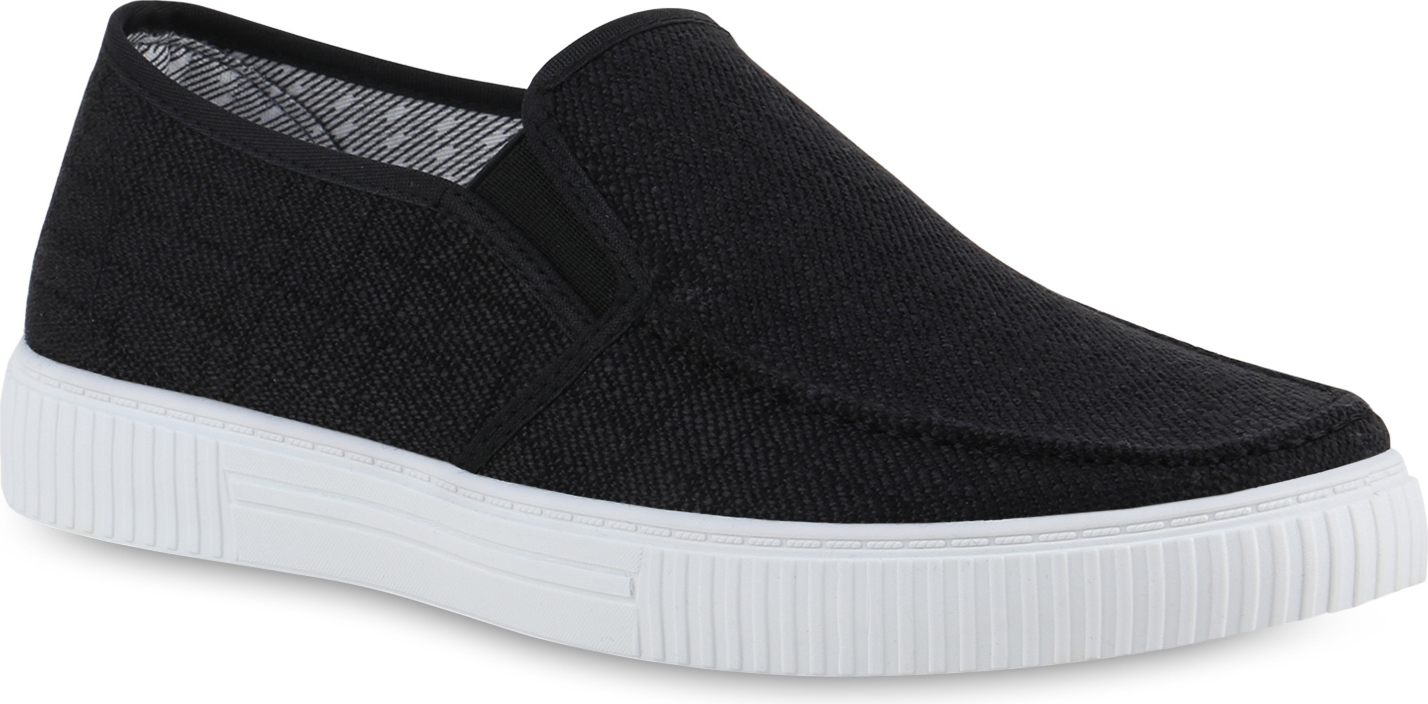 VAN HILL 841680 Slipper Herren Slip Ons Slippers Bequeme Basic Stoff Freizeit (schwarz)