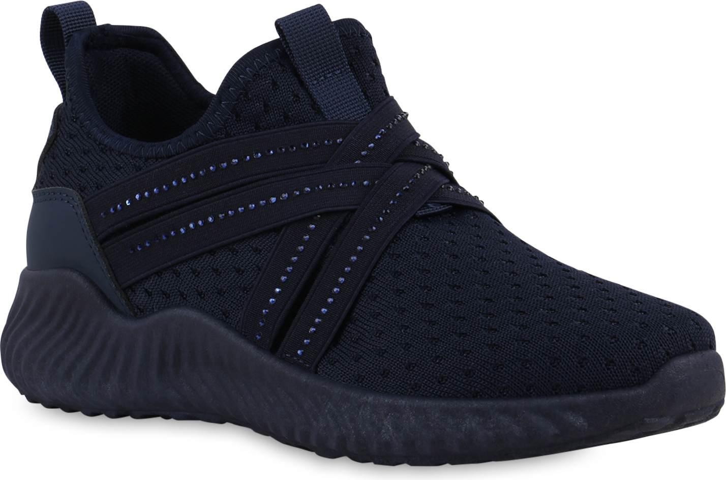 VAN HILL 841681 Laufschuh Damen Slip Ons Sportschuhe Sportliche Strass Profil-Sohle (blau)