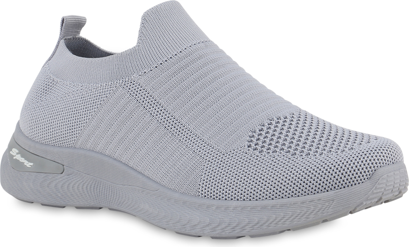 VAN HILL 841703 Laufschuh Damen Slip Ons Sportschuhe Sportliche Strick Profil-Sohle (grau)