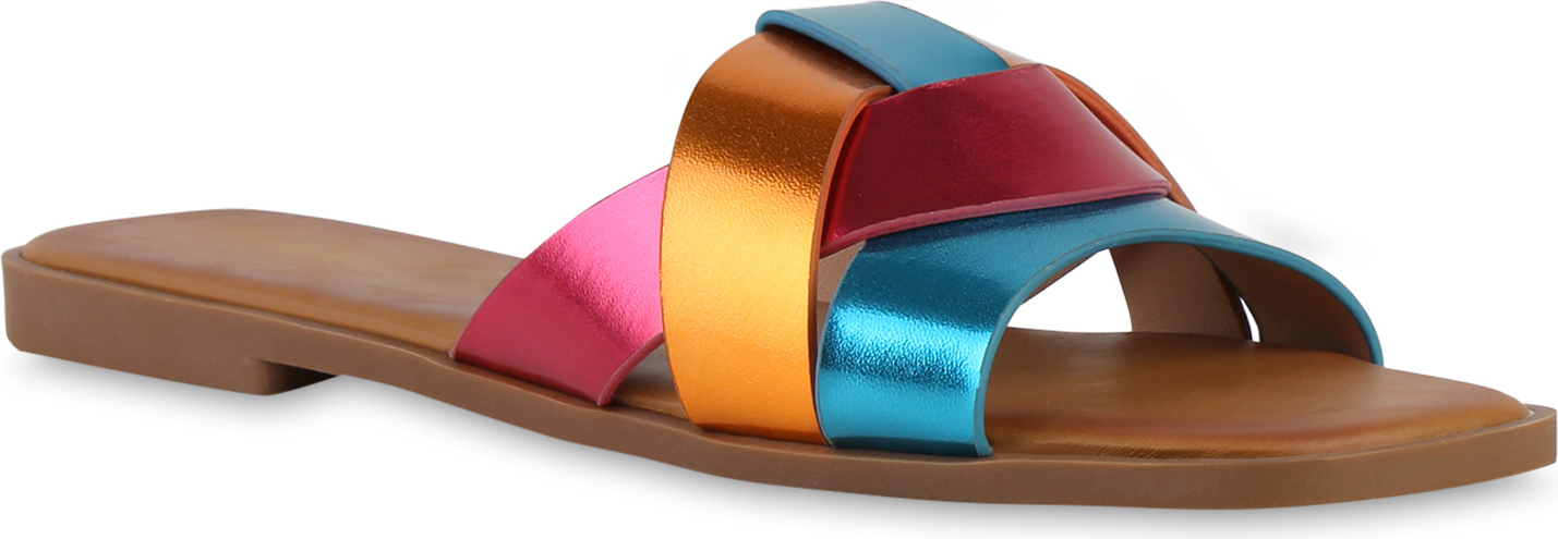 VAN HILL 841729 Pantolette Damen Pantoletten Sandalen Basic Leder-Optik Freizeit (bunt)