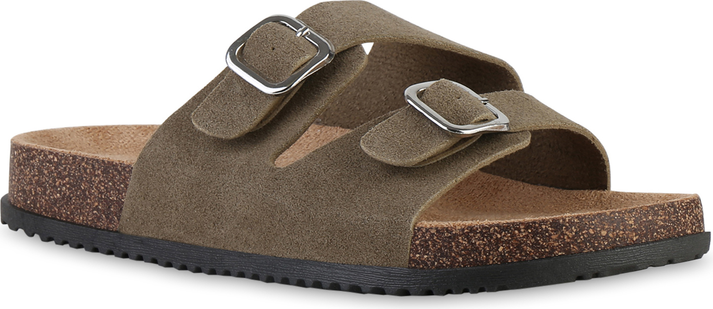 VAN HILL 841734 Pantolette Damen Pantoletten Sandalen Bequeme Korkoptik Profil-Sohle (grün)