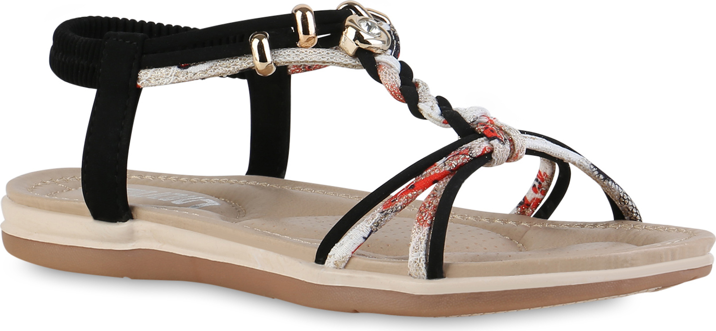 VAN HILL 841743 Riemchensandale Damen Riemchensandalen Sandalen Zierperlen Freizeit Prints (schwarz)