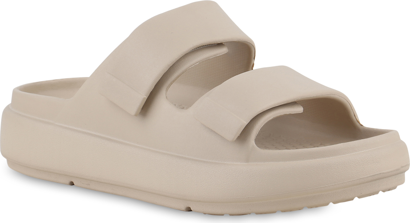 VAN HILL 841757 Sandalette Damen Pantoletten Sandaletten Bequeme Profil-Sohle (beige)