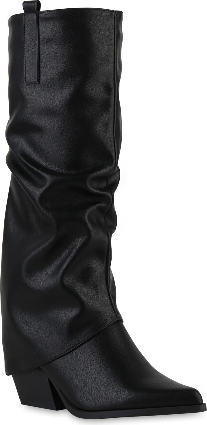 VAN HILL 841793 Cowboystiefel Damen Gefüttert Cowboystiefel Stiefel Spitz Holzoptikabsatz (schwarz)