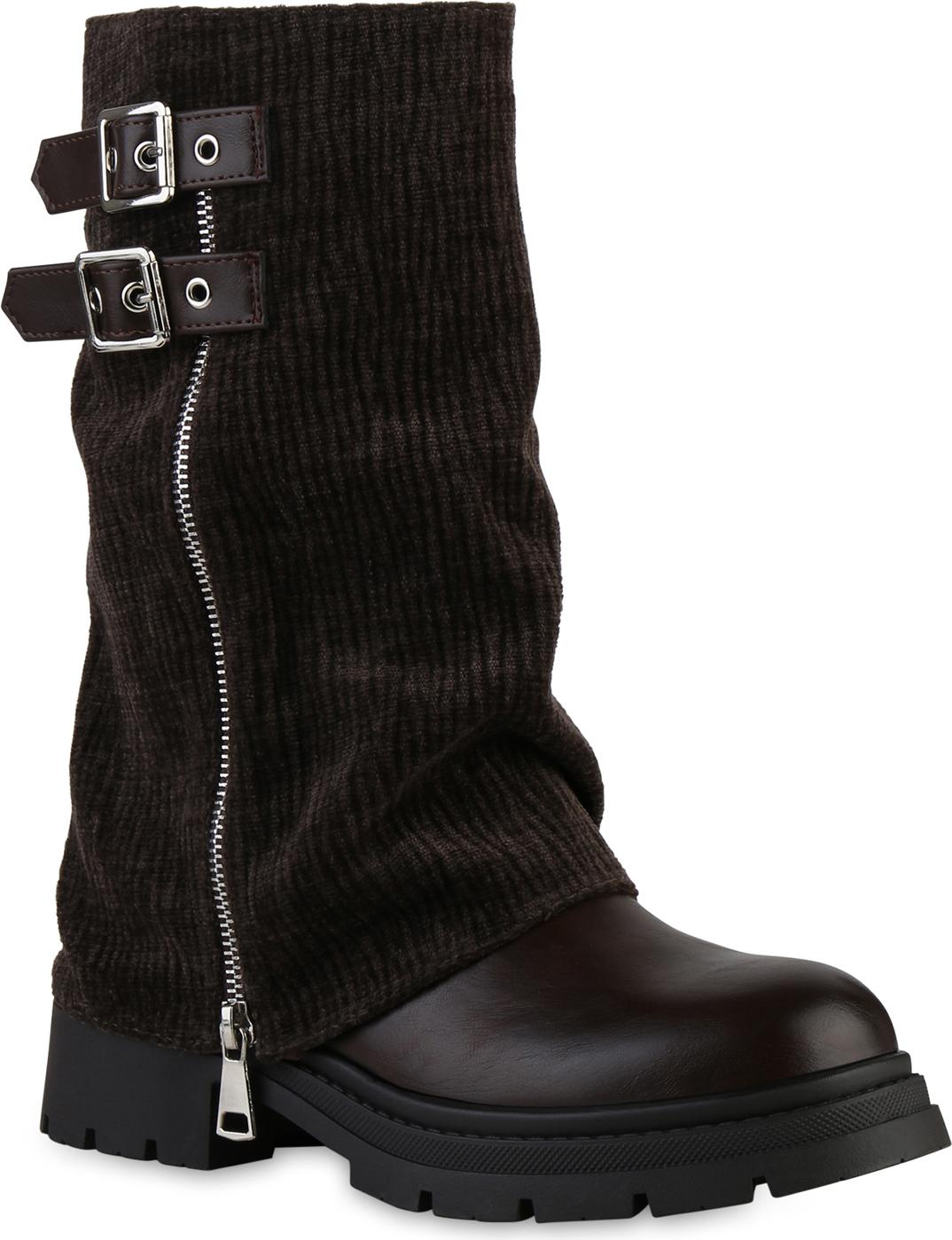 VAN HILL 841799 Stiefel Damen Leicht Gefüttert Bikerstiefel Stiefel Zipper Schnalle (braun)