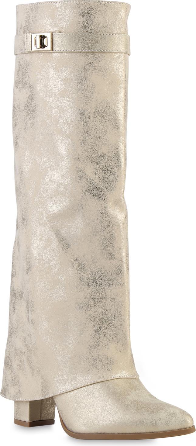 VAN HILL 841807 Stiefel Damen Klassische Stiefel Spitze Schnallen Leder-Optik (gold)