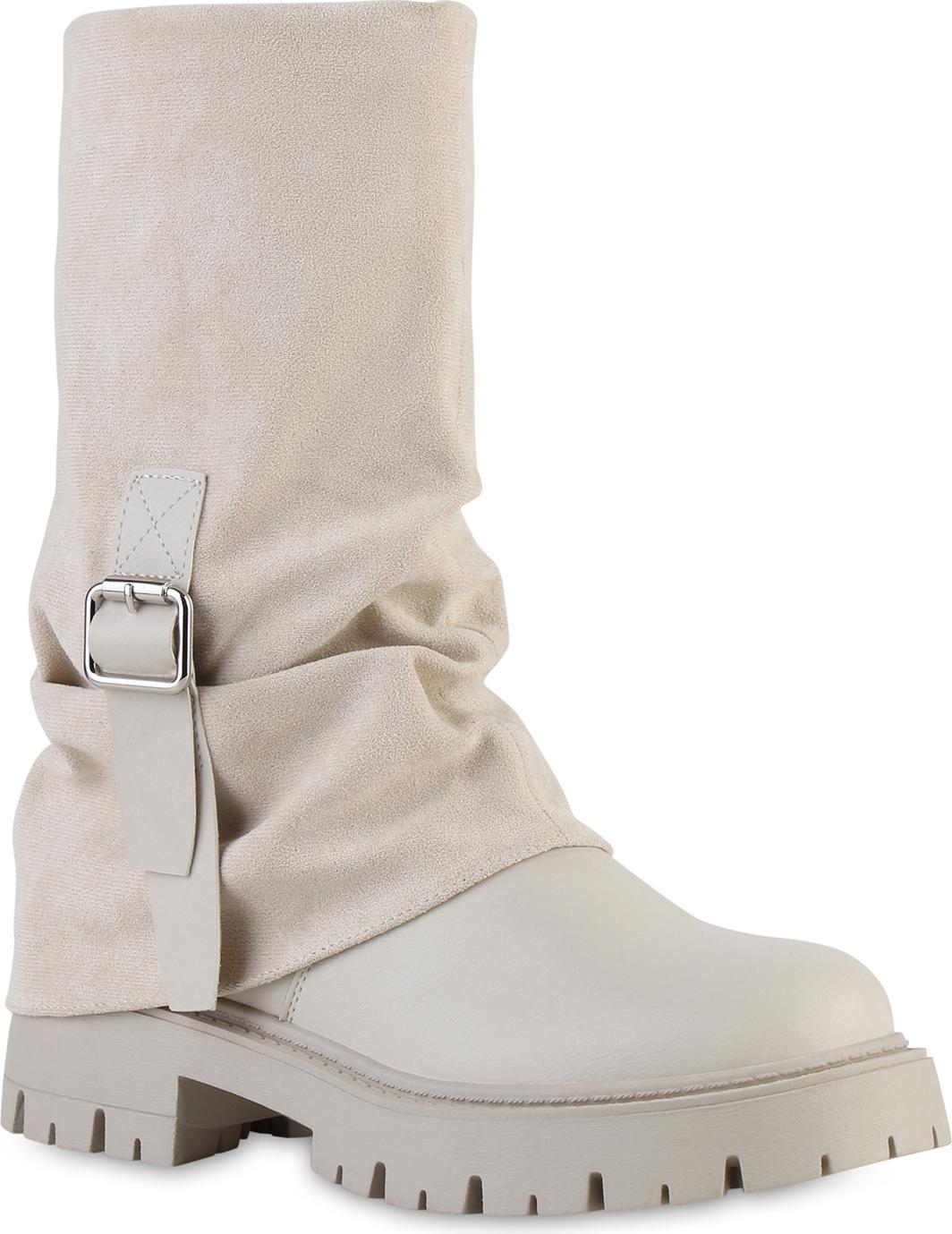 VAN HILL 841810 Stiefel Damen Bikerstiefel Stiefel Plateau Vorne Profil-Sohle (beige)