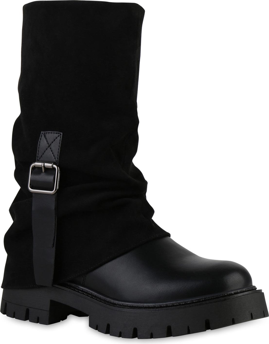 VAN HILL 841810 Stiefel Damen Bikerstiefel Stiefel Plateau Vorne Profil-Sohle (schwarz)