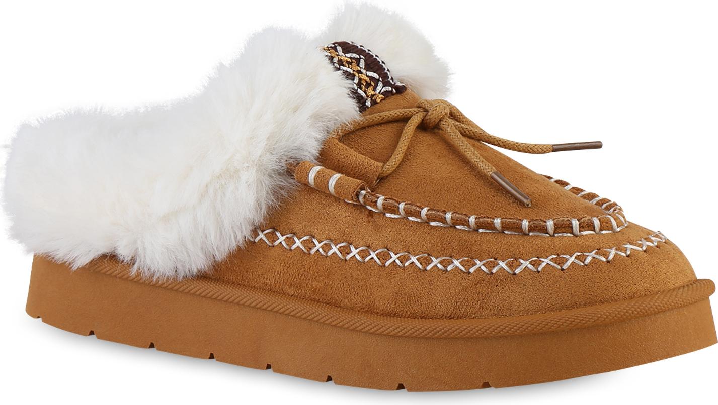 VAN HILL 841826 Hausschuh Damen Warm Gefüttert Pantoffeln Hausschuhe Bequem Kunstfell (braun)