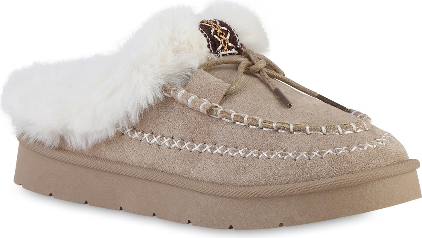 VAN HILL 841826 Hausschuh Damen Warm Gefüttert Pantoffeln Hausschuhe Bequem Kunstfell (grün)