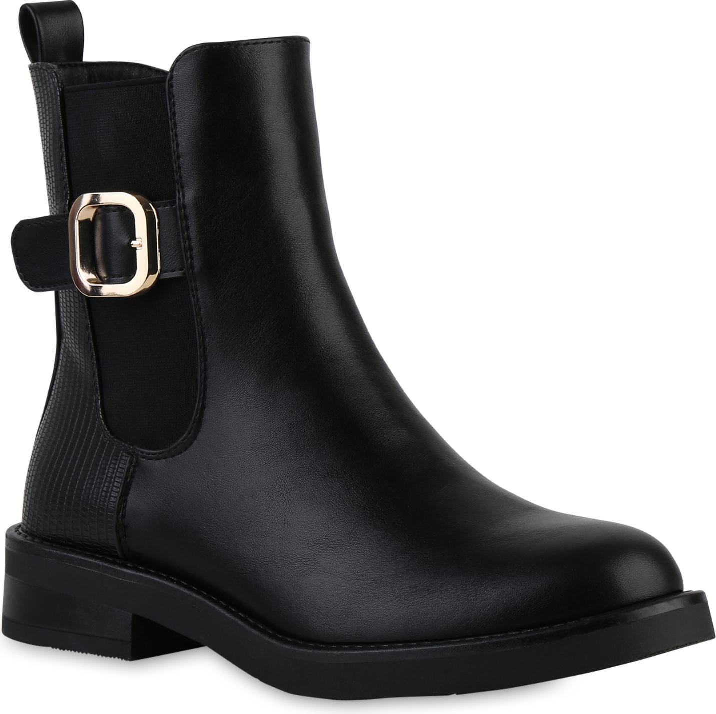VAN HILL Damen Klassische Stiefeletten Schnallen Prints Schuhe 841839, Farbe: Schwarz, Größe: 37