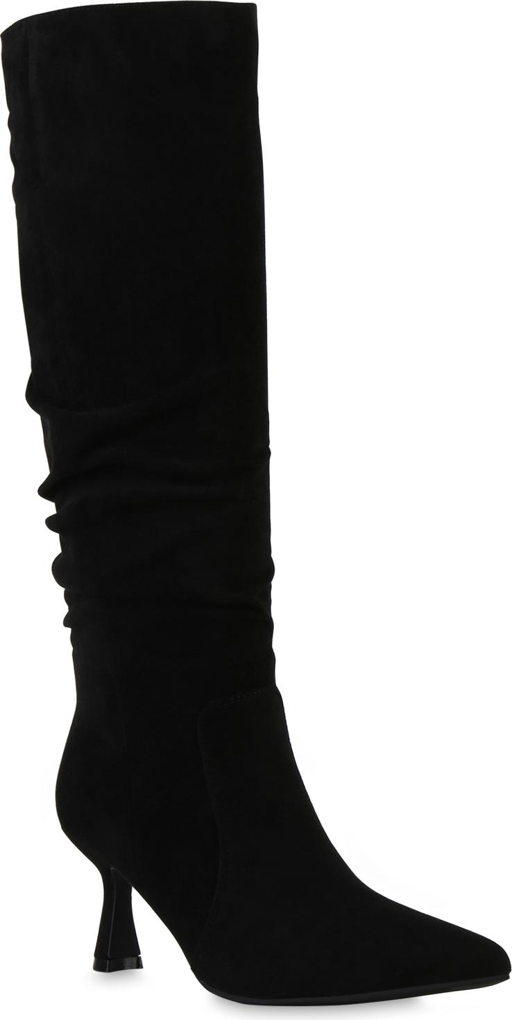 VAN HILL 841844 Stiefel Damen Klassische Stiefel Spitze Stiletto Veloursleder-Optik (schwarz)
