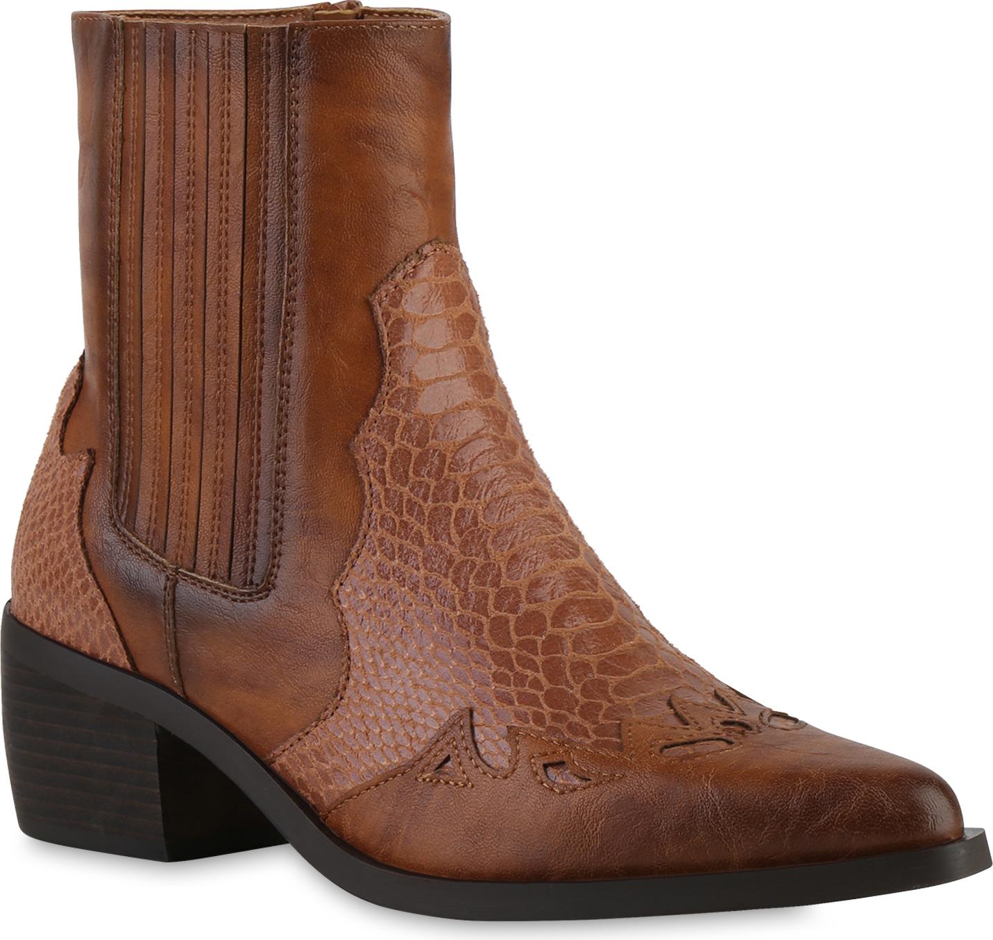 VAN HILL 841855 Cowboy Boots Damen Cowboy Boots Stiefeletten Spitze Holzoptikabsatz (braun)
