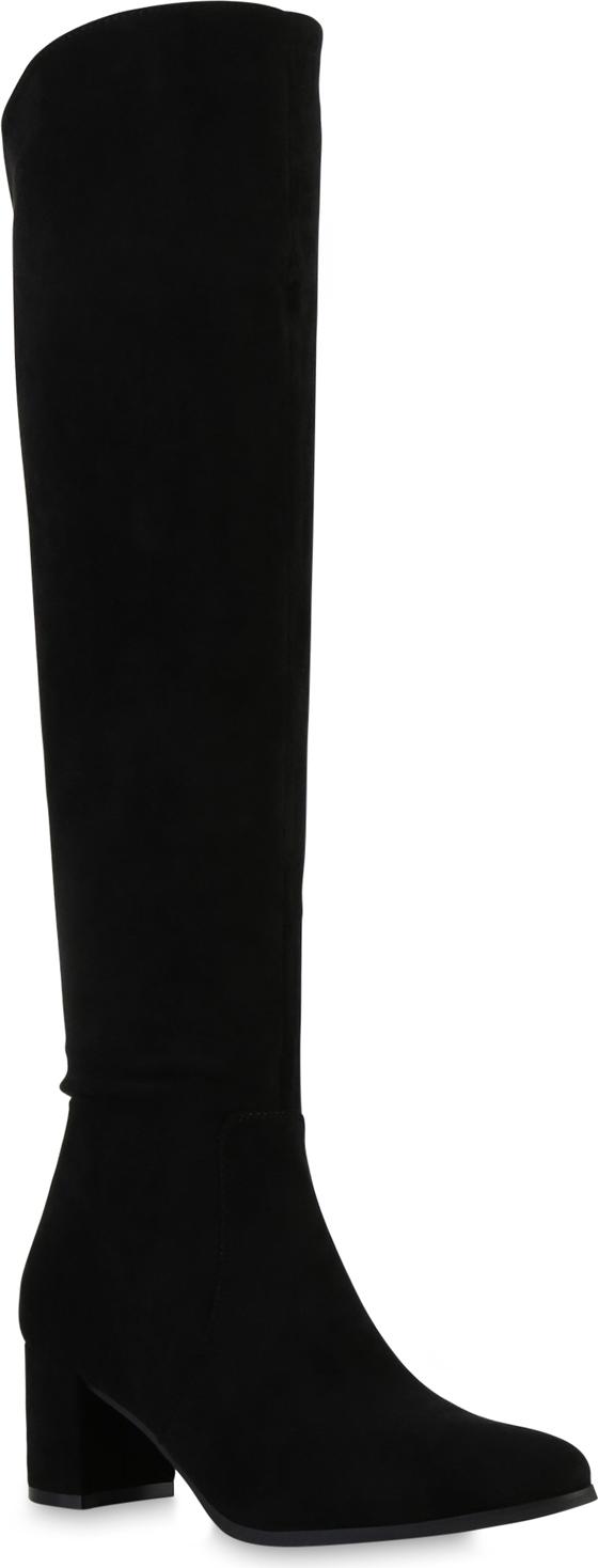 VAN HILL 841857 Overkneestiefel Damen Overknees Stiefel Basic Veloursleder-Optik (schwarz)