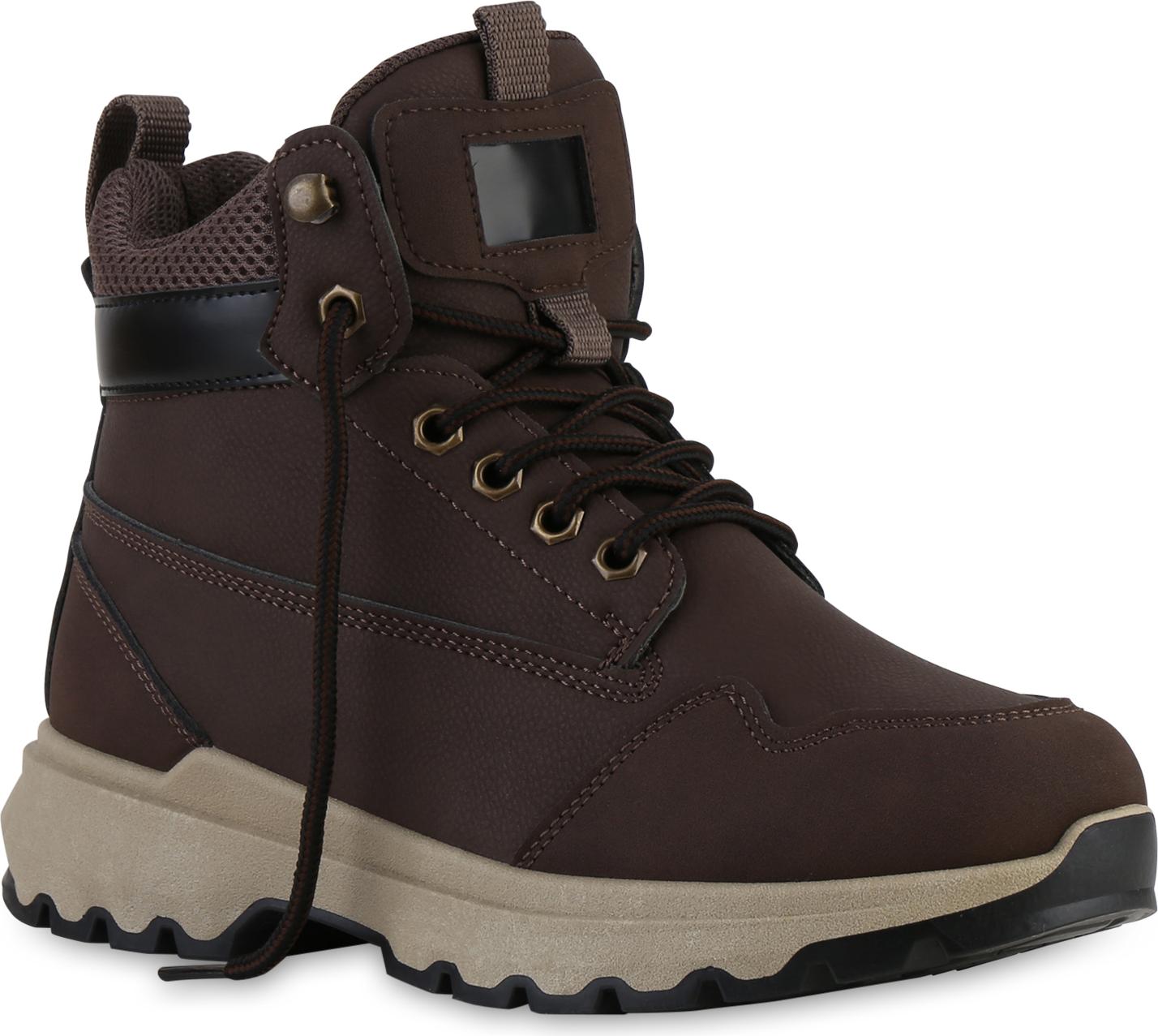 VAN HILL 841860 Stiefelette Damen Worker Boots Stiefeletten Profil-Sohle (braun)
