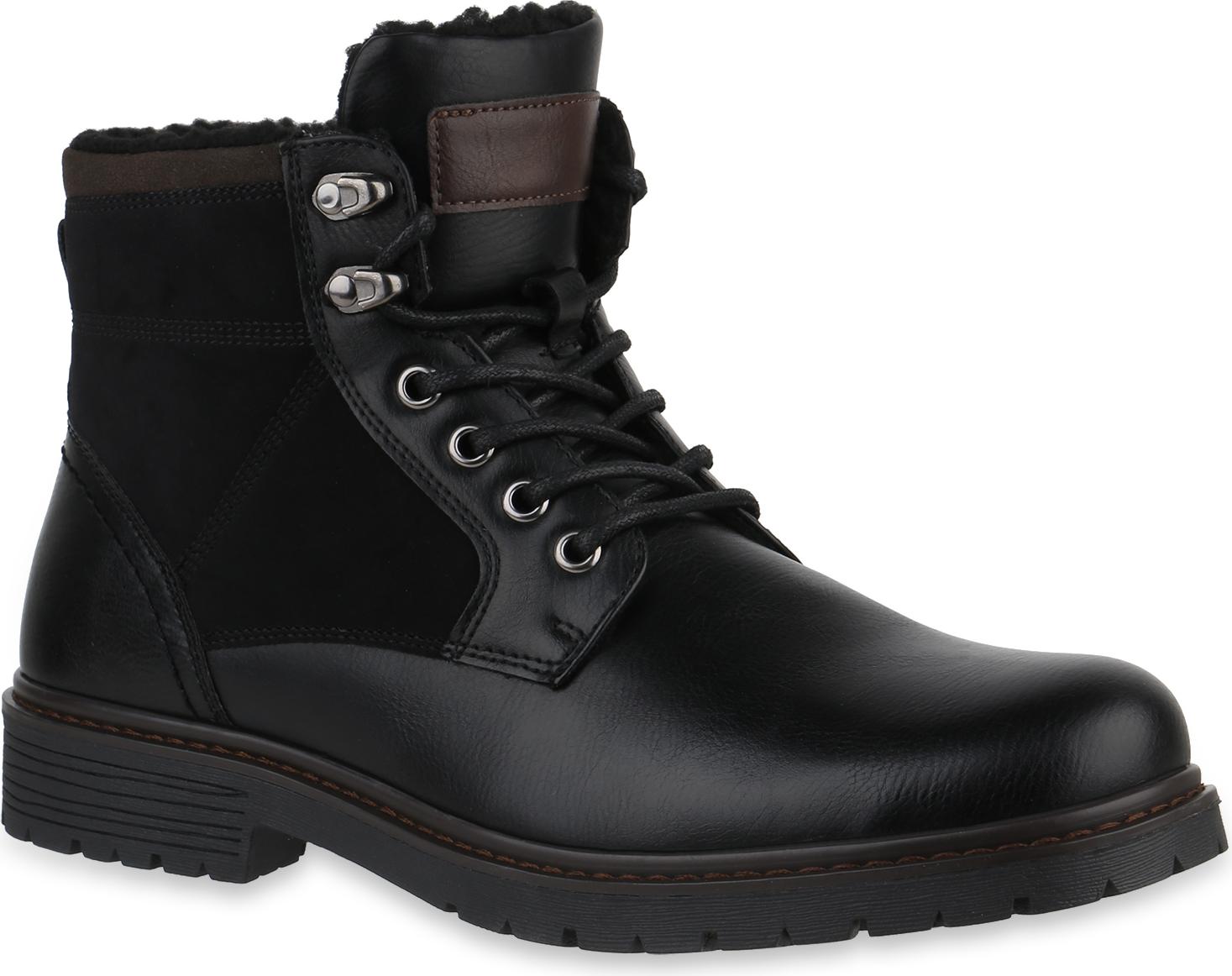 VAN HILL 841881 Bootsschuh Herren Warm Gefütterte Worker Boots Bequeme Profil-Sohle (schwarz)