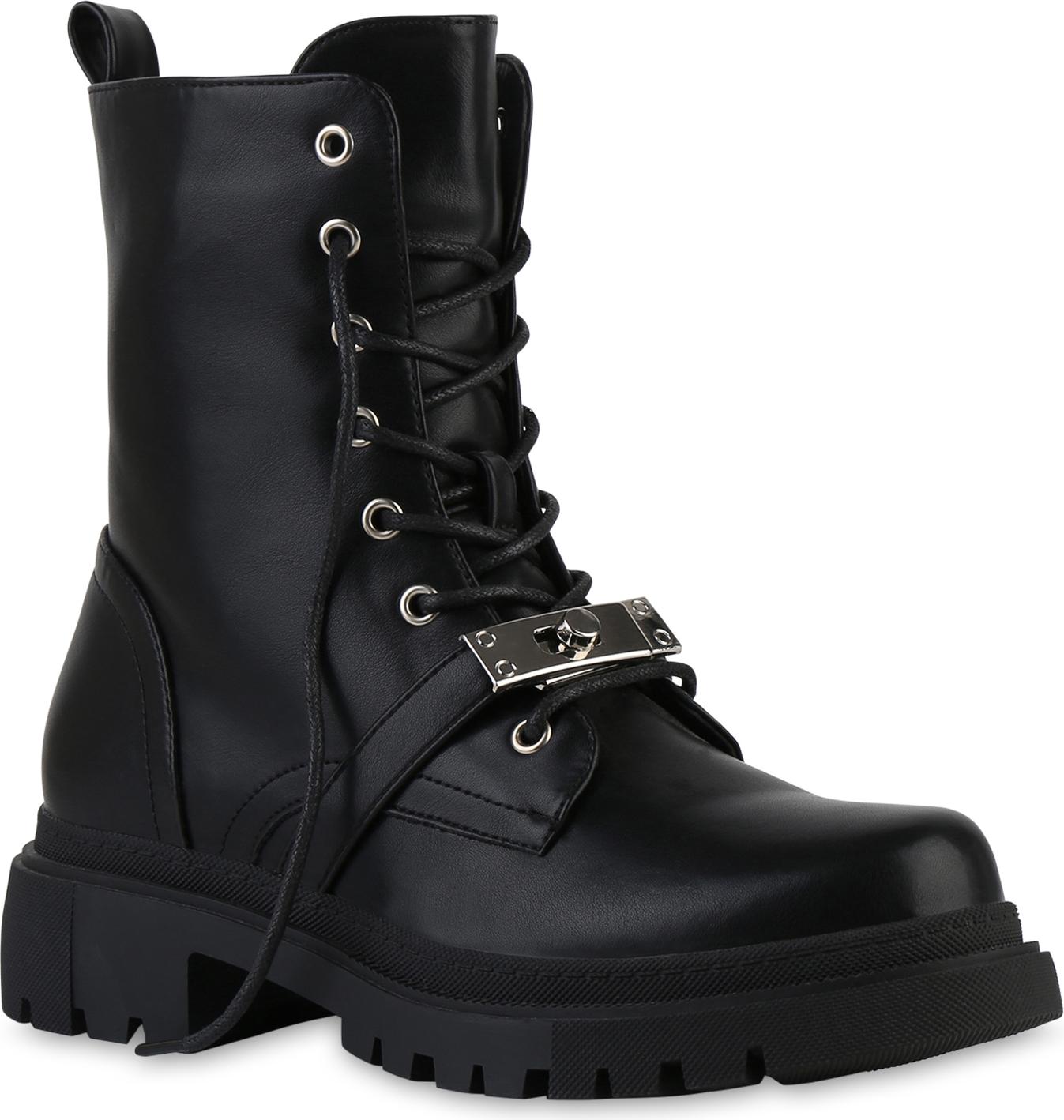 VAN HILL 841890 Schnürstiefelette Damen-Schnürstiefeletten mit Metallverzierung (schwarz)