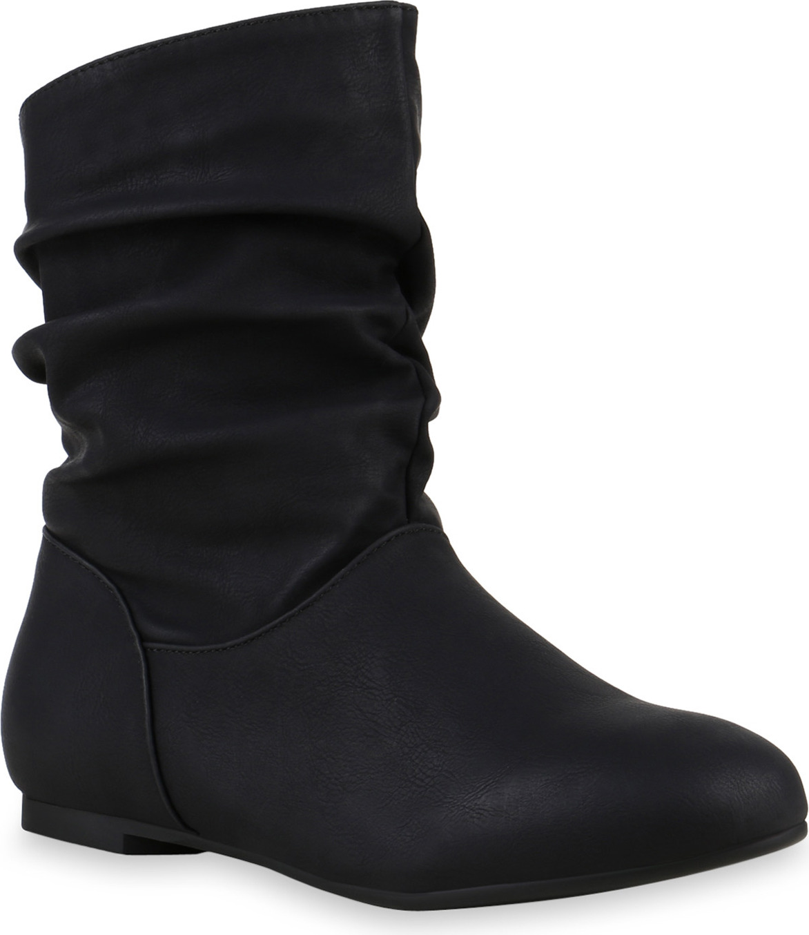 VAN HILL 902283 Schlupfboots Damen Schlupfstiefel Leder-Optik Stiefeletten Bequeme (schwarz)