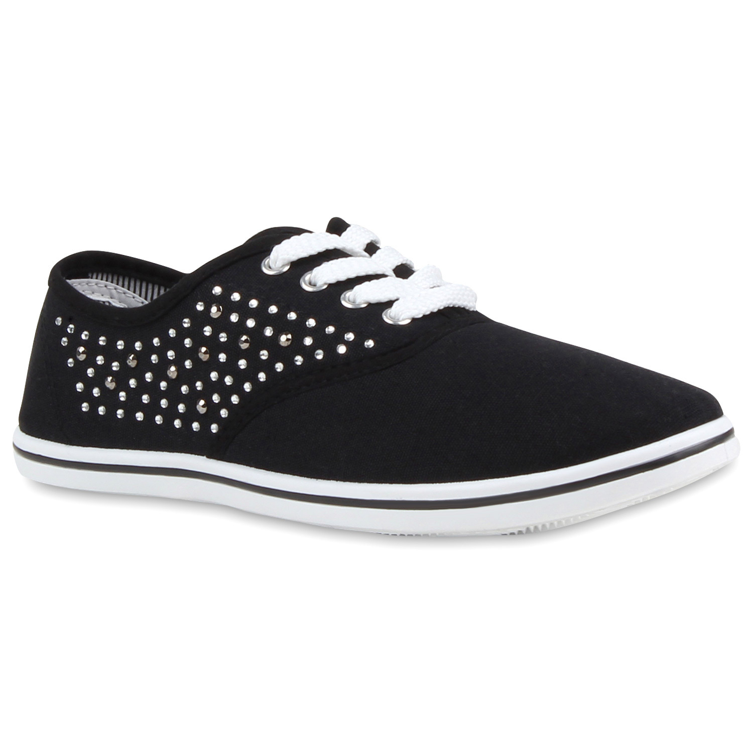 VAN HILL 96632 Sneaker Damen Sneakers Low Strass Turnschuhe Bequeme Schnürer (schwarz)