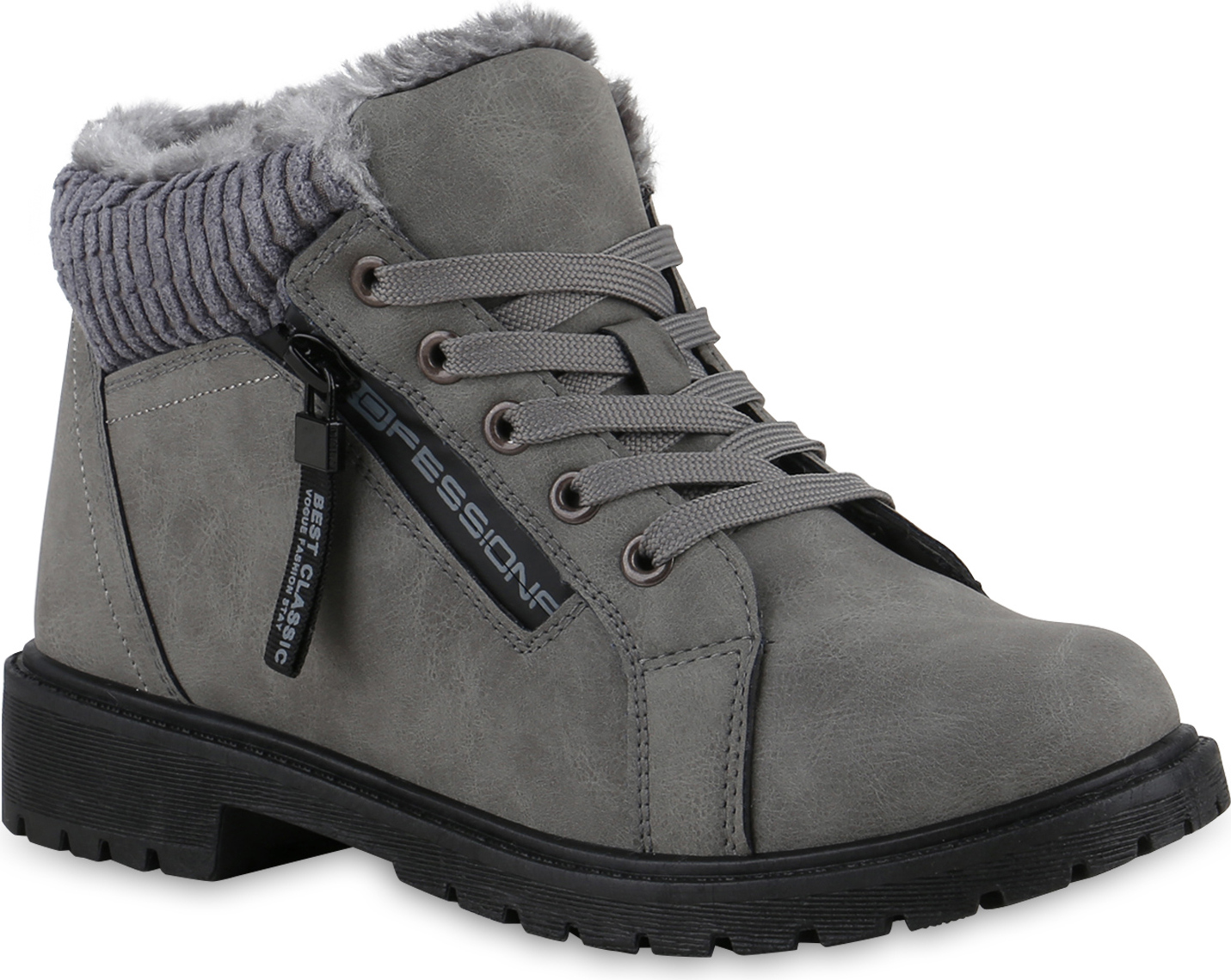 VAN HILL Damen Warm Gefüttert Worker Boots Stiefelette Bequem Prints Schuhe Stiefelette Damen Warm Gefüttert Worker Boots Stiefelette Bequem Prints (grau)