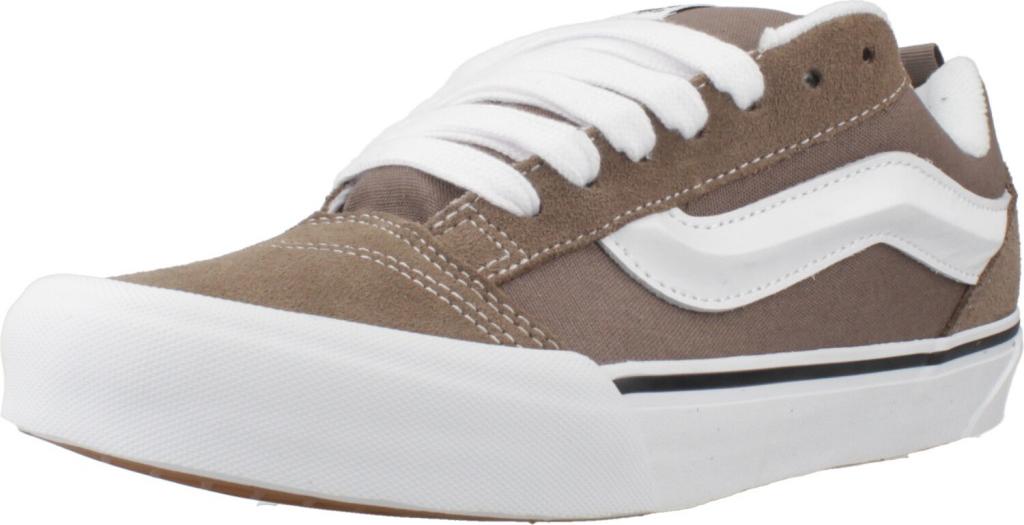 Wenn dir das noch nicht trendig genug ist, kannst du ein zusätzliches Highlight mit wadenhohen Socken setzen, die unter der etwas hochgekrempelten Hose hervorblitzen. Für einen sportlichen Kleidungsstil: die Unisex-Sneaker »Knu Skool« von Vans.