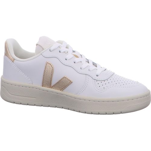 Veja V-10 Leather Damen Sneaker Turnschuhe, Sportschuhe, Freizeitschuhe, Halbschuhe, Schnürschuhe (weiß)