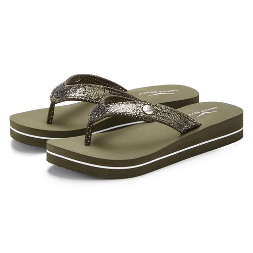 VENICE BEACH Sandale, Pantolette Badezehentrenner Zehentrenner, Badeschuh ultraleicht mit Glitzerband VEGAN (grün)